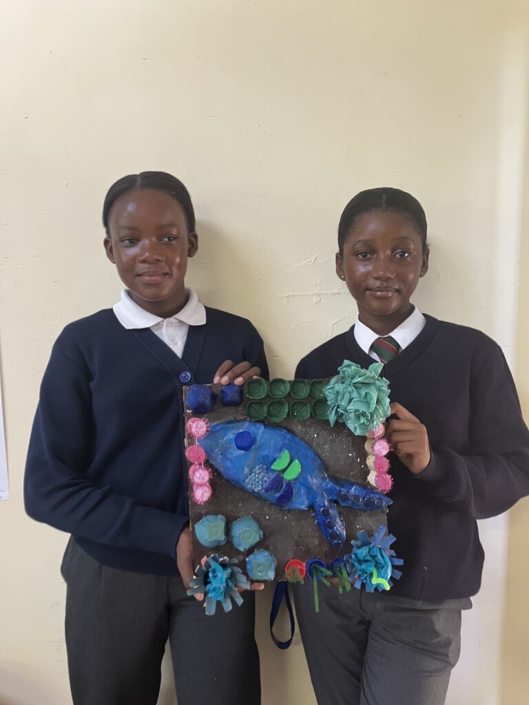 The learners used recycled materials, particularly plastics, to create artworks that highlighted the growing problem of ocean pollution. Through this creative process, the learners learned how everyday waste can harm marine ecosystems and the animals that live in them.